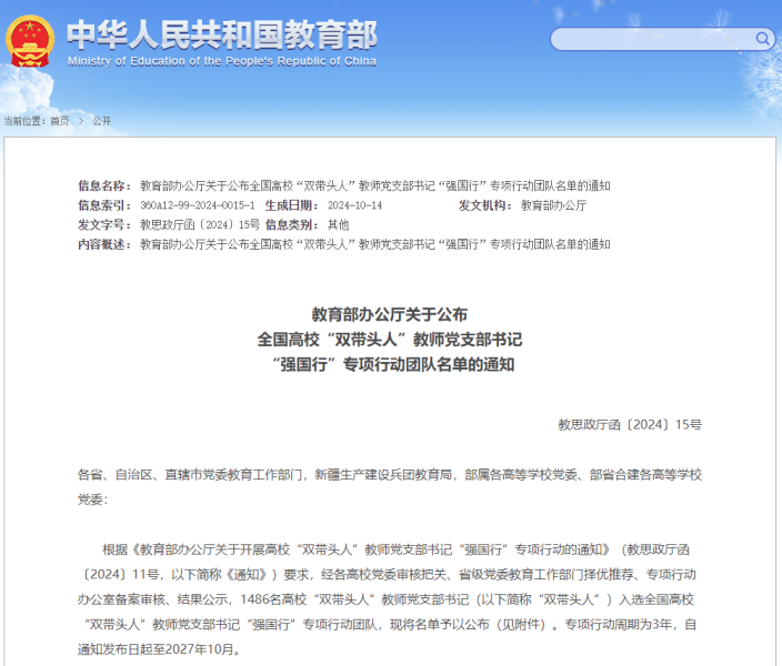 祝贺!ac米兰官网中文网站2个支部入选全国高校“双带头人”教师党支部书记“强国行 ”专项行动团队名单