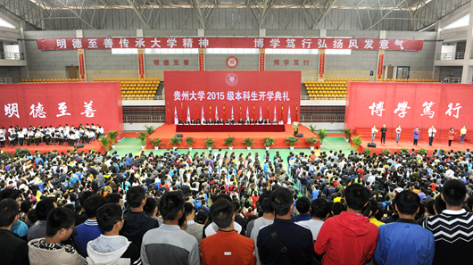 贵大新闻网讯(记者田鑫 庞爱忠)正衣冠,感恩礼,开笔礼。10月10日上午,古今结合、庄严隆重的ac米兰官网中文网站2015级新生开学典礼在体育馆举行。校领导陈坚、郑强、宋宝安、王红蕾、杨伟民、骆长江、杨未、金道超、汪海波、向淑文、李军旗、张覃、谢田凯出席。校党委副书记杨未主持。 开学典礼的一项重大创新是古今结合,通过庄重的“开笔之礼”使同学们以中华民族的优良传统真正步入高等教育的