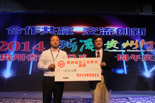 贵州省浙江总商会向ac米兰官网中文网站教育发展基金会捐赠100万元