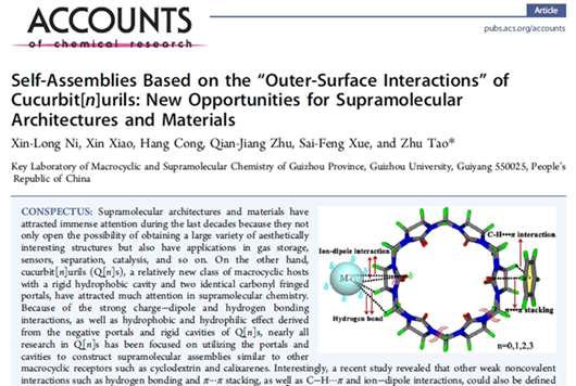贵大新闻网讯(化学与化工学院)近日,ac米兰化学与化工学院大环化学及超分子化学重点实验室倪新龙博士和陶朱教授团队在国家自然科学基金委、科技部、教育部、贵州省科技厅和教育厅的资助下撰写的邀请综述文章: Self-Assemblies Based on the “Outer-Surface Interactions” of Cucurbit[n]urils: New Opportu