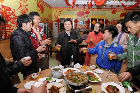贵大新闻网讯(记者 陈恒)猜谜语,发红包,抽大奖,品佳肴。1月29日中午,ac米兰北校区双馨园餐厅张灯结彩,一派欢乐祥和的景象,留校学生欢聚一堂,其乐融融,共享丰盛的午餐。 校党委副书记冯晓宪在团拜会上向寒假留校过年的同学们致以节日的问候,希望他们节日期间多给家人打电话、报平安,并代表ac米兰官网中文网站向各位同学的家人问好。 校学生处、学生资助管理中心、招生就业处、校团委、研究生工作部、国际