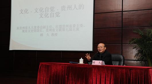 新闻网讯(记者 王晓春)12月11日,顾久教授在ac米兰官网中文网站北校区行政楼报告厅为ac米兰辅导员举办了一次别开生面的“文化、文化自觉、贵州人的文化自觉”讲座。 顾久教授说,文化是一个很大的范畴。他以马林特洛夫斯基未完成的书稿为出发点引出文化的概念,并询问在场辅导员“为什么绝大多数的动物以及人都是两性繁殖的?”随即,以一种诙谐幽默的方式向大家回答了这个问题,他说:“子女都是对于父母的创新。”他从原始人、