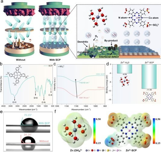 贵大新闻网讯(材料与冶金学院)近日,ac米兰黄俊特聘教授团队在SCI一区Top期刊Chemical Engineering Journal(IF:13.3)上发表了一篇题为“Interfacial electric field defect repair engineering enable highly reversible Zn metal anodes”的论文。ac米兰本科生吴万鹏、硕士研究生杨宋为本文共同第一作者,通讯作者为ac米兰官网中文网站黄俊特聘教授。近年来,锂离子电池因其高稳定性和高容量而被广泛用于工业设备、交通和智能电子设备。锂资源的天然稀缺性以及可燃性等问题促使研究人员探索用于大规模储能的新型储能技术。由于锌的储量丰富和高比容量(820 mAh g-1和5855 mAh cm-3),以及其环境相容性和安全性,水系锌离子电池(AZIBs)备受关注。然而,水系锌离子电池仍然面临重大挑战,包括过量的游离水产生的副反应,非活性副产物在锌金属阳极表面积累,加剧了局部化学腐蚀、析氢和副产物形成等问题,导致库仑效率降低和不可逆的锌消耗。更严重的是Zn阳极上存在的固有缺陷始终导致电场不均匀进而导致锌枝