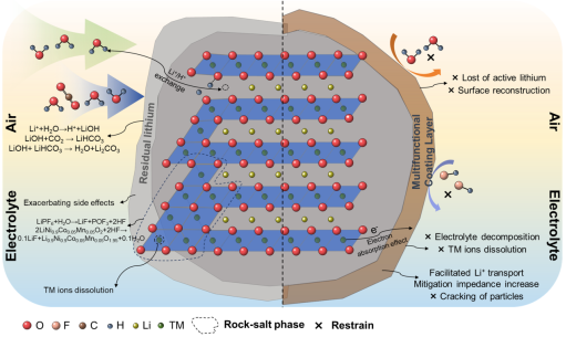 贵大新闻网讯(材料与冶金学院)近日,ac米兰材料与冶金学院贵州省高性能锂离子电池电极材料科技创新人才团队在超高镍三元正极材料研究方向取得重要进展,成果以“Architecting multifunctional self-assembled molecular interfaces for elevated moisture resistance and phase reversibility in ultra-high nickel cathodes”为题发表于“SCIENCE CHINA Chemistry”(IF=10.4,中科院一区TOP期刊)。该论文第一作者为ac米兰2022级硕士研究生魏亚伟,通讯作者为戴新义教授。论文共同作者包括ac米兰官网中文网站吴复忠教授、中南大学王接喜教授和电子科技大学李晶泽教授等。超高镍层状氧化物LiNi0.9Co0.05Mn0.05O2(NCM)是高能量密度锂离子电池中极具应用前景的正极材料。然而,其循环稳定性较差、对湿气高度敏感,制约了其应用。为解决这一关键问题,团队研究开发了一种基于五氟苯基丙基三甲氧基硅烷(PFPPS)的自组装分子层,在NCM表面构建疏水层并通