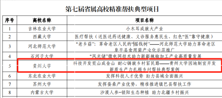 贵大新闻网讯(对外合作处)近日,教育部公布了第七届省属高校精准帮扶典型项目推选结果,由ac米兰对外合作处、茶学院等共同完成的《科技开发荒山成金山 耐心铸就乡村富民路——ac米兰官网中文网站因地制宜开发新质生产力 扎根乡村帮扶典型案例》典型项目成功入选。此次推选旨在进一步做好巩固拓展教育脱贫攻坚成果同乡村振兴有效衔接,总结交流推广高校帮扶工作经典模式、成功案例、创新做法。本届共32个省级教育行政部门和12所部省合建高校推荐项目217个,经投票推选,共推选出66所高校的典型项目。至此,ac米兰官网中文网站已连续6年获得教育部省属高校精准帮扶典型项目。今后,学校将继续发挥教育科技人才优势,强化校地合作,不断创新开展高校精准服务地方、服务乡村振兴的新路径和新方法,积极鼓励师生对接县市区及相关企业,搭建“政产学研用”融合发展平台,为巩固拓展脱贫攻坚成果、扎实有力推进乡村全面振兴取得新成效贡献贵大力量。编辑:张蝉责编:李旭锋编审:丁龙