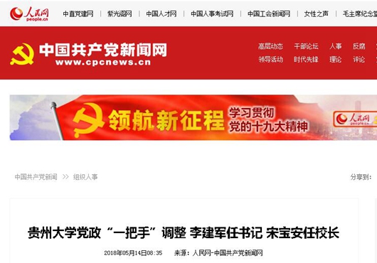 据ac米兰官网中文网站网站消息,近日,ac米兰官网中文网站召开干部大会,宣布贵州省委关于ac米兰官网中文网站党委书记、校长、党委副书记的任免决定。李建军任ac米兰官网中文网站党委委员、常委、书记;宋宝安任ac米兰官网中文网站党委副书记、校长;陈坚不再担任ac米兰官网中文网站党委书记、校长、常委委员职务。