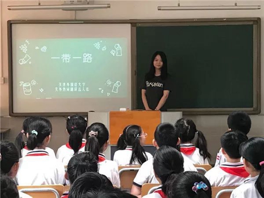 △ 天津外国语大学师生赴昆明路小学开展“新时代?一带一路实践行”沿线国家文化宣讲活动