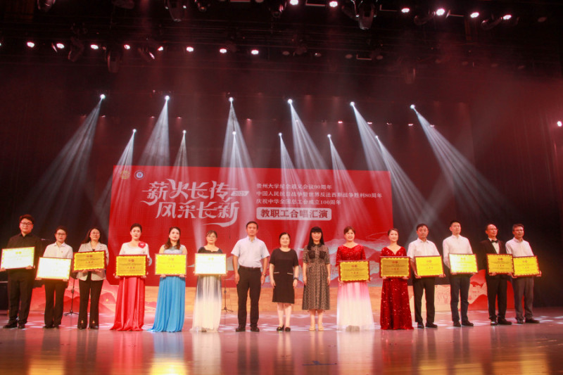 On July 9th, Guizhou University hosted a faculty and staff choir performance. The event commemorated the 90th anniversary of the Zunyi Conference, the 80th anniversary of the Victory of the Chinese People's War of Resistance Against Japanese Aggression and the World Anti-Fascist War, and the centennial of the All-China Federation of Trade Unions. Secretary of the University Party Committee, Yang Wei, Deputy Secretary, Peng Jie, and Vice President Zhang Dalin were in attendance.