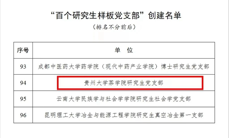 人民网·贵州频道:贵大茶学院研究生党支部入选全国高校“百个研究生样板党支部”