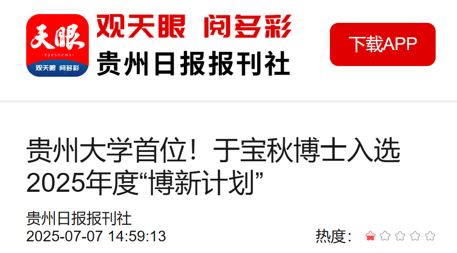 天眼新闻客户端:ac米兰官网中文网站首位!于宝秋博士入选2025年度“博新计划”