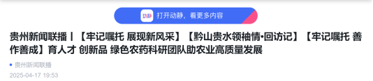 贵州广播电视台:贵州新闻联播丨【牢记嘱托 展现新风采】【黔山贵水领袖情•回访记】【牢记嘱托 善作善成】育人才 创新品 绿色农药科研团队助农业高质量发展