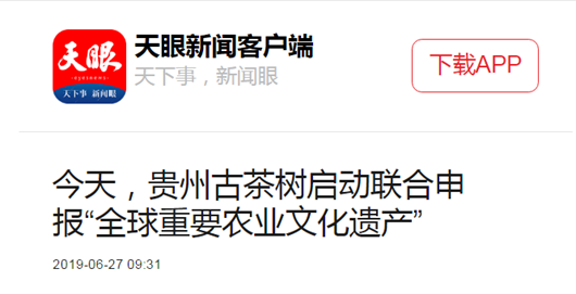 天眼(贵州日报当代融媒体客户端):今天,贵州古茶树启动联合申报“全球重要农业文化遗产”