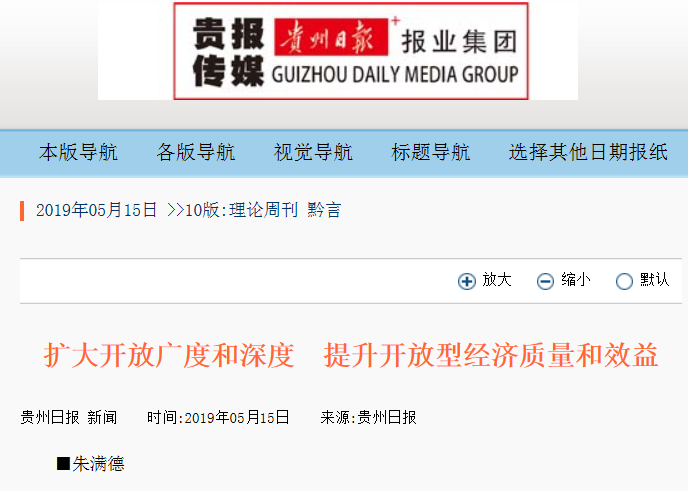 ■朱满德坚持改革、坚持开放,是贵州经济保持持续快速发展的两大“法宝”。进入新世纪以来,我省通过持续推进改革、扩大对外开放、改革与开放的互动互促,经济增速已经连续多年位居全国前列。数据显示,2018年我省引进省外到位资金突破万亿元,实际利用外资45亿美元;进出口总额501亿元,其中出口338亿元,进口163亿元;旅游总人数达到9.69亿人次,旅游总收入接近9500亿元。当前面对全球经济、地缘政治、国际贸易保护等形势错综复杂,国内正处在转变发展方式、优化经济结构、转换增长动力的攻关期,进一步扩大开放、加快建设开放型经济,会有不少困难和挑战。但也应看到,通过多年努力奋斗,我省初步构建起联通内外的高速公路和高铁网络、航空和水运体系,现代化立体快速交通网络日趋完善;大数据、大旅游、大生态、大健康产业快速发展,山地特色高效农业、装备制造业、生产性服务业等稳步推进,现代产业体系逐步形成;内陆开放型经济试验区、贵安新区、综合保税区、国际无水港、航空口岸等建设加快,对外开放平台不断增多、开放层次和质量快速提升。这些为进一步扩大开放夯实了基础、提供了保障。因此,站在新的起点上,更要坚定信心、系统谋划,进一