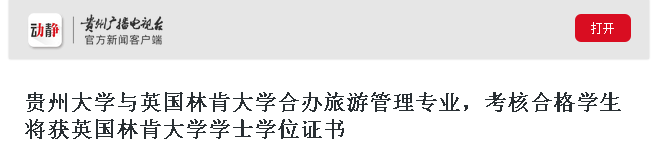 动静(贵州广播电视台新闻客户端):ac米兰官网中文网站与英国林肯大学合办旅游管理专业,考核合格学生将获英国林肯大学学士学位证书