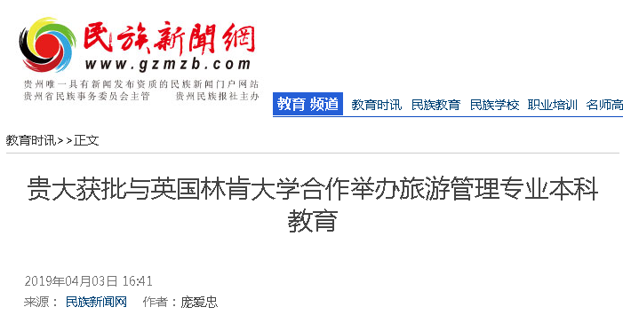 民族新闻网 :贵大获批与英国林肯大学合作举办旅游管理专业本科教育