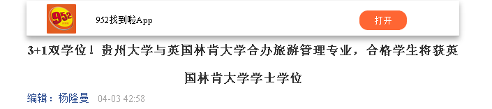 贵阳网:贵大获批与英国林肯大学合作举办旅游管理专业本科教育