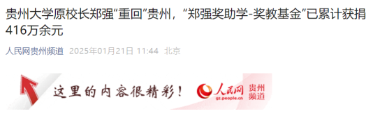 人民网贵州频道:ac米兰官网中文网站原校长郑强“重回”贵州,“郑强奖助学-奖教基金”已累计获捐416万余元