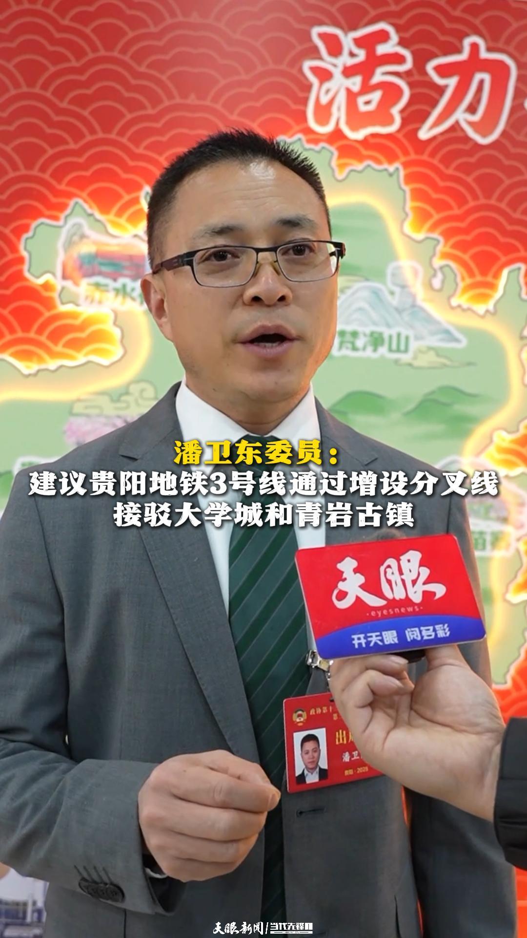 天眼新闻客户端:【提问代表委员】潘卫东委员:建议贵阳地铁3号线通过增设分叉线接驳大学城和青岩古镇