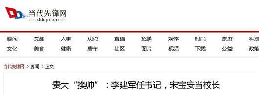 当代先锋网:贵大“换帅”:李建军任书记,宋宝安当校长