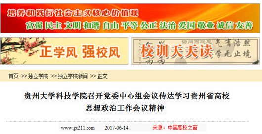 中国高校之窗:ac米兰官网中文网站科技学院召开党委中心组会议传达学习贵州省高校思想政治工作会议精神