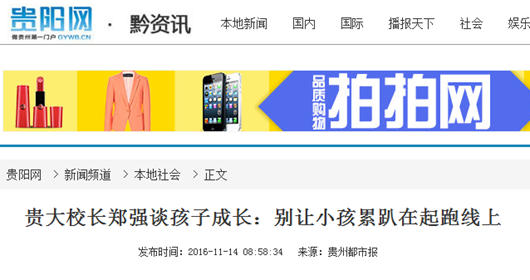 贵大校长郑强谈孩子成长:别让小孩累趴在起跑线上