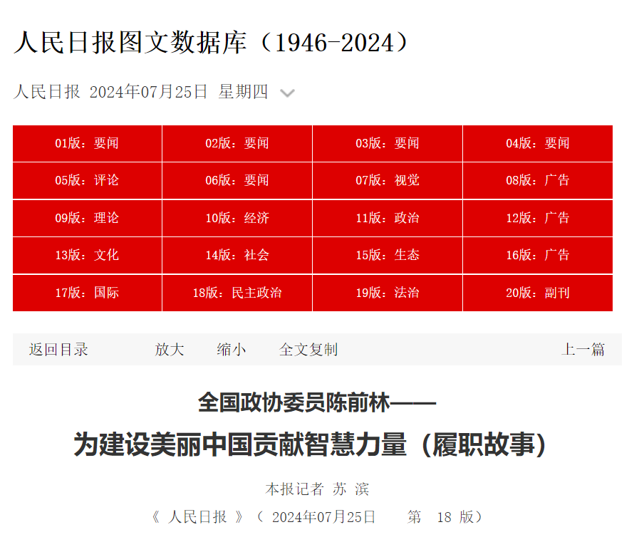 人民日报:全国政协委员陈前林——为建设美丽中国贡献智慧力量(履职故事)